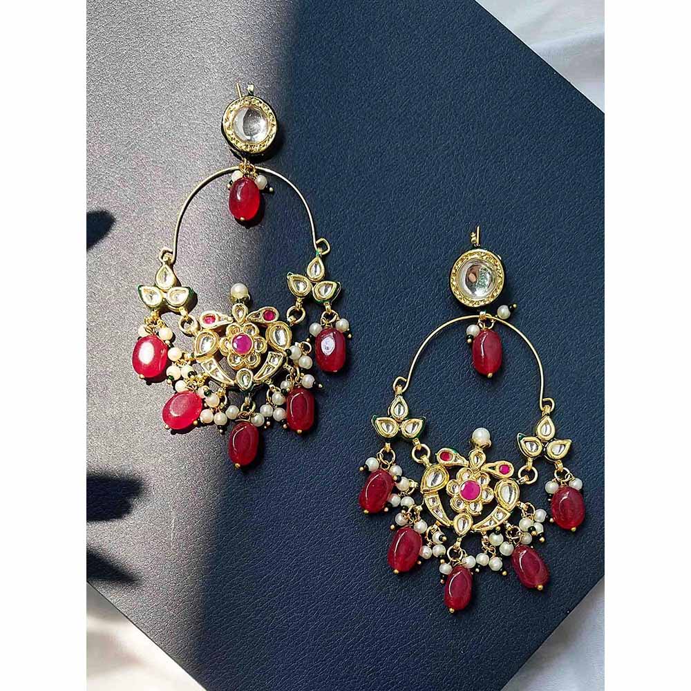 Red Kundan Chandbali Earrings