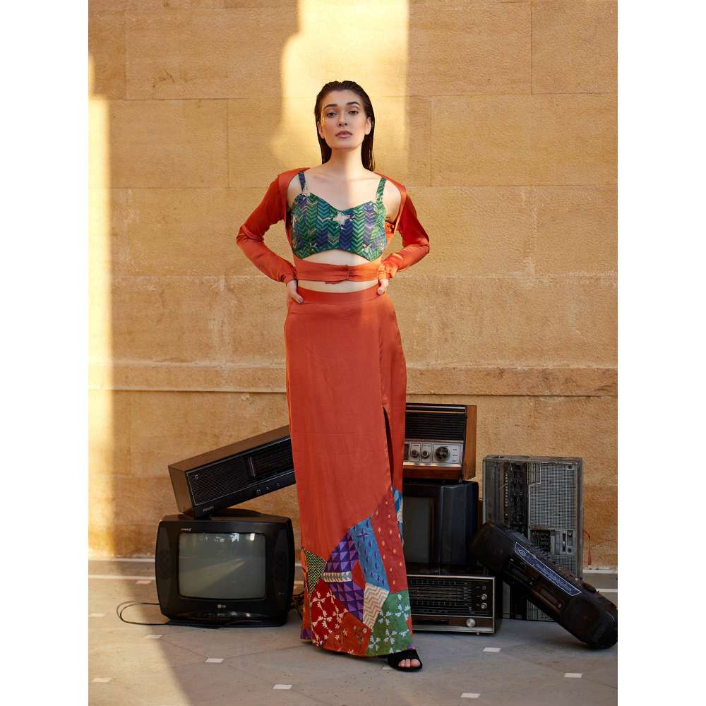 Amrood Rust Blouse with Skirt and Jacket (Set of 3)