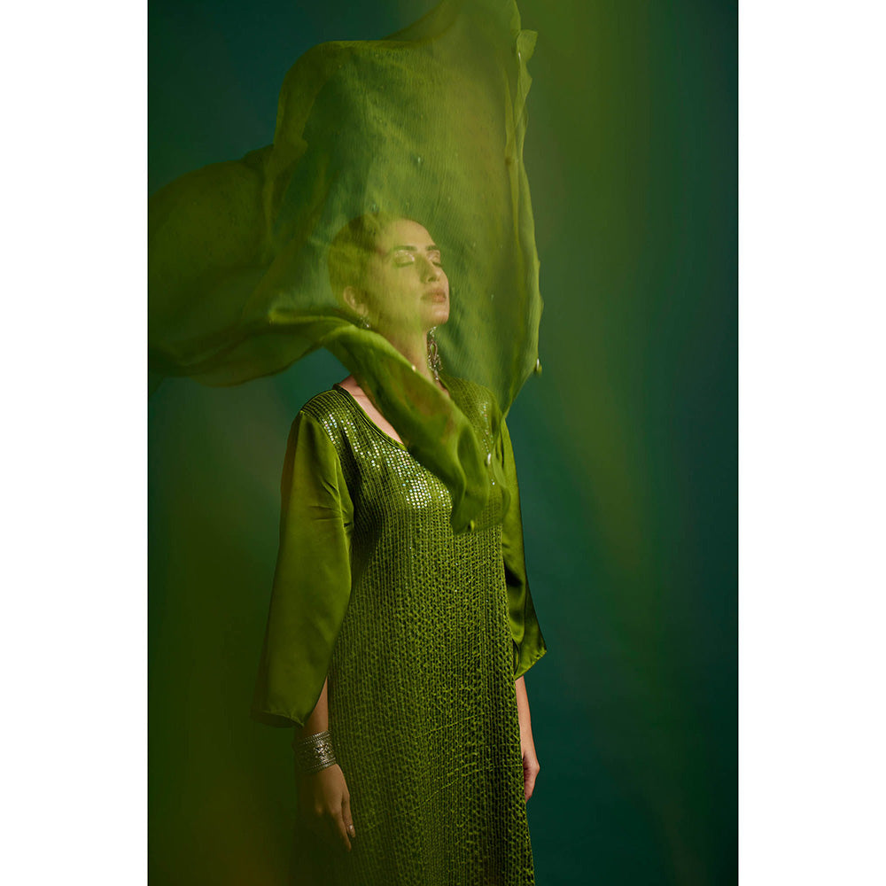 Apeksha Jain Label Olive Kurta with Pant and Dupatta (Set of 3)