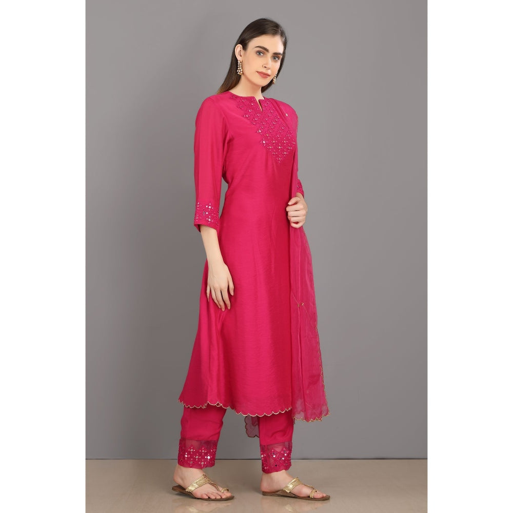 Asaga Anum Rani Embroidered Chanderi Silk Kurta with Pants and Organza Dupatta (Set of 3)