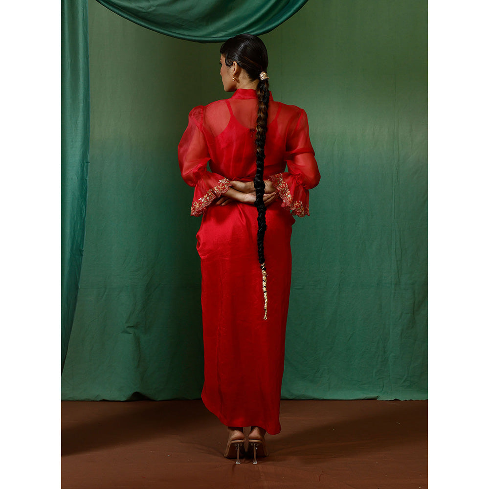 Red Shirt With Slip And Skirt And Belt (Set of 4)