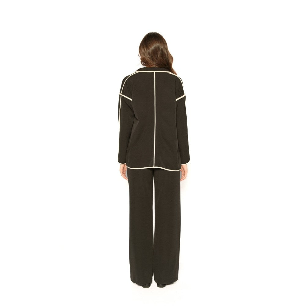 Description : A Long-Sleeved Reversible Shrug-Style Blazer Featuring A Waterfall Lapel And A Slip-On Closure. The Design Has An Open, Fluid Fit And Is Reversible. The Exterior Features Contrast Piping For A Defined Look, While The Interior Is Mostly A Solid Color For A Plain Shrug-Style Silhouette.