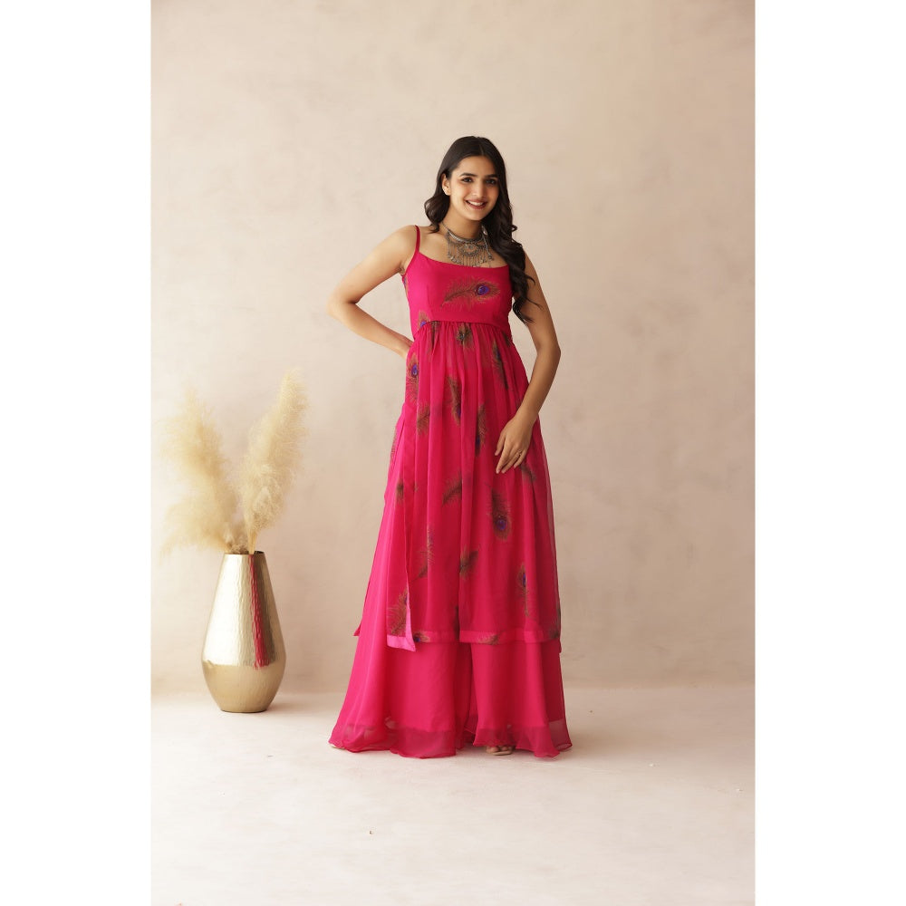 Raavi Pink Peacock Strap Kurta with Palazzo (Set of 2)