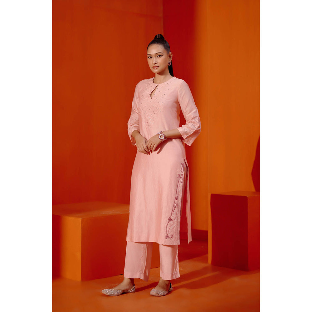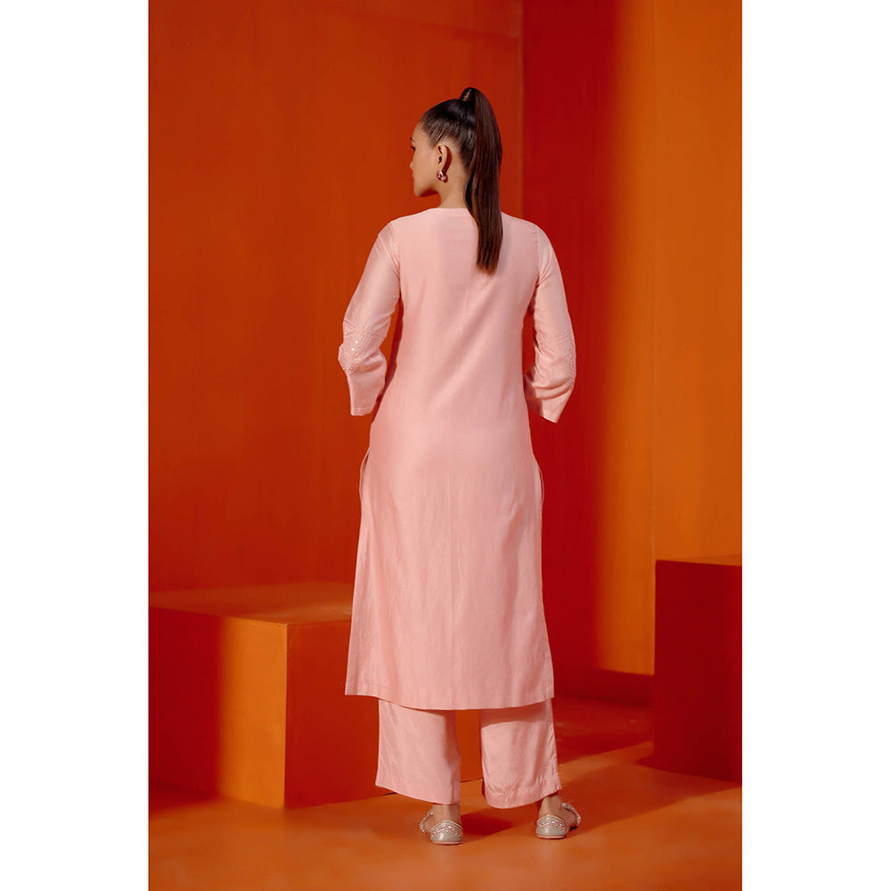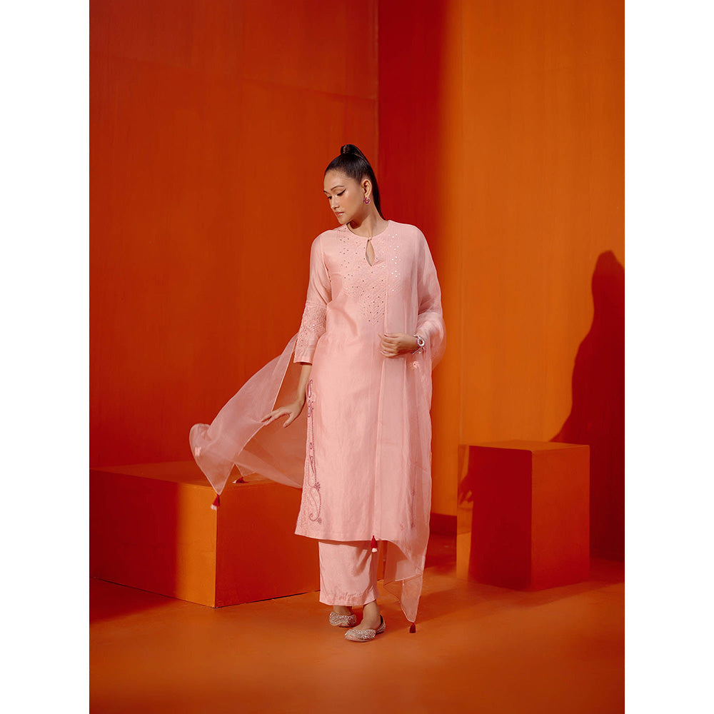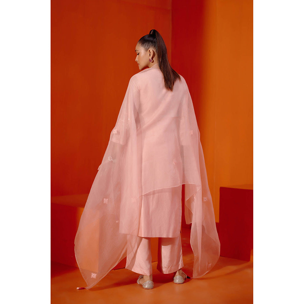 Devnaagri Blush Pink Embroidered Silk Chanderi Palazzo (Set of 3)