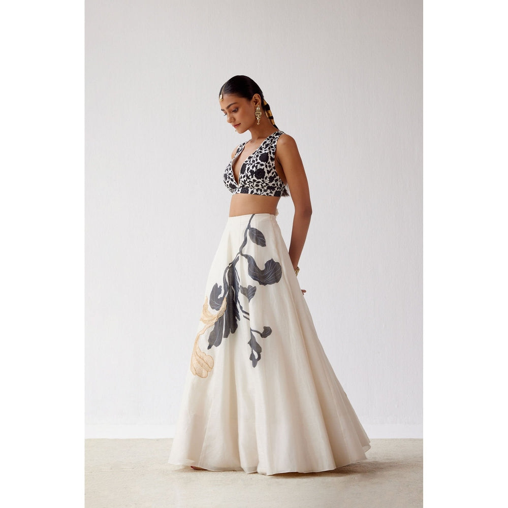 Devnaagri Ivory Handpaint Lehenga and Blouse with Dupatta (Set of 3)
