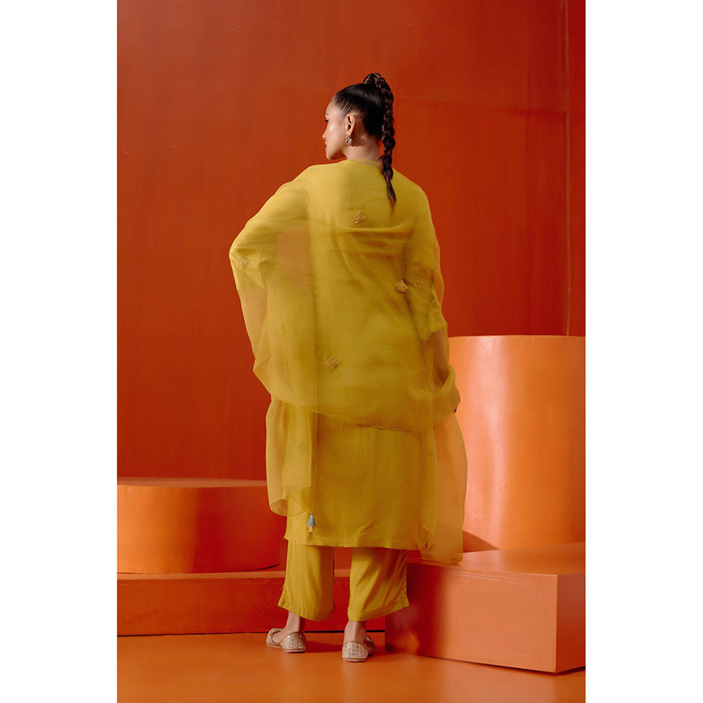 Devnaagri Mustard Embroidered Silk Chanderi Kurta (Set of 3)