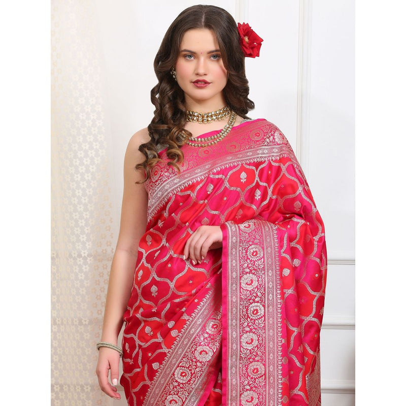 Royal Pink Rangkat Silk Saree with Unstitched Blouse