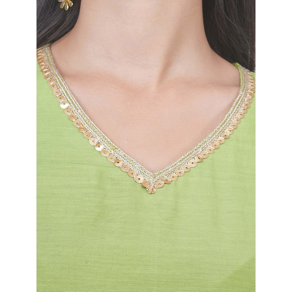 Green Kali Kurta with Pant and Dupatta (Set of 3)