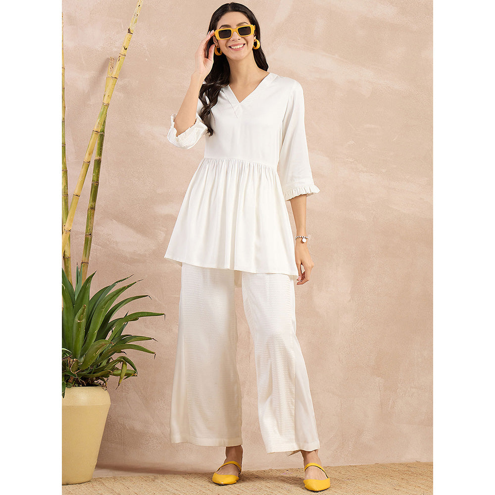 White V-Neck Peplum Top with Flared Trouser (Set of 2)