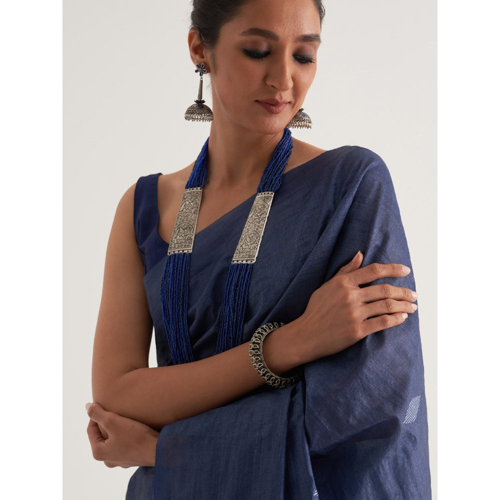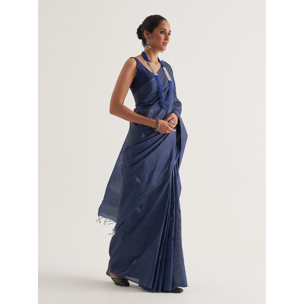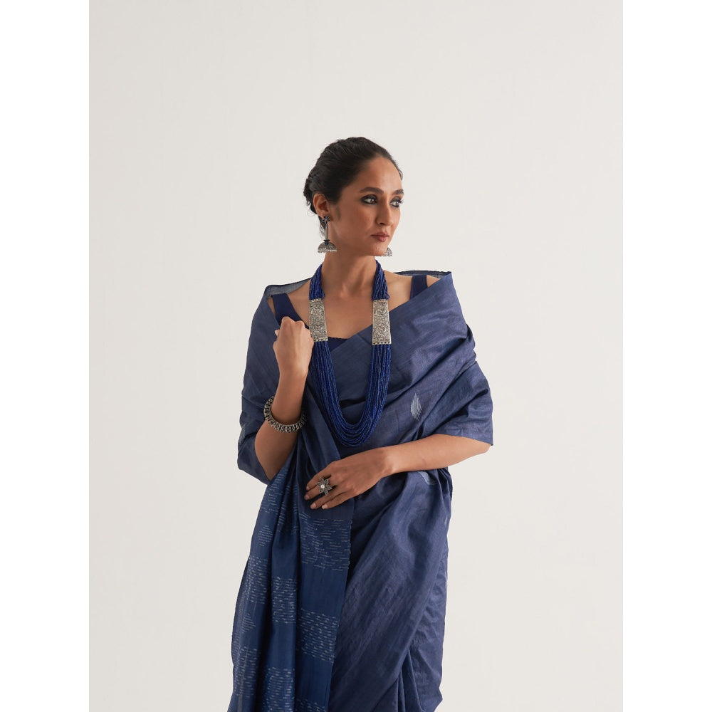 Five Point Five Blue Motif Woven Overall Saree with Unstitched Blouse