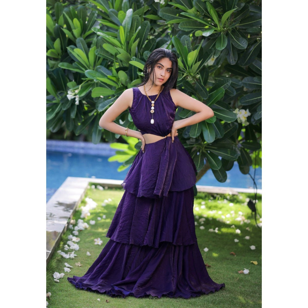FORAM PATEL Purple Ruffle Maxi Dress