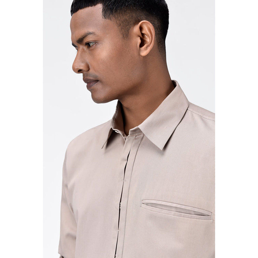 Regular Fit Button Up Shirt With Pleated Placket Sand