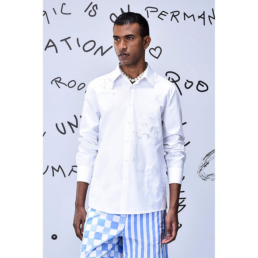 Genes Lecointe Hemant Card Cut-Out Regular Fit Shirt- White