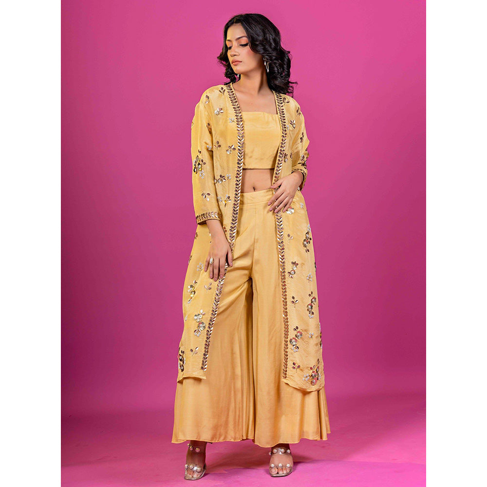 Harleen Kaur Yellow Floral Crop Top with Palazzo and Jacket