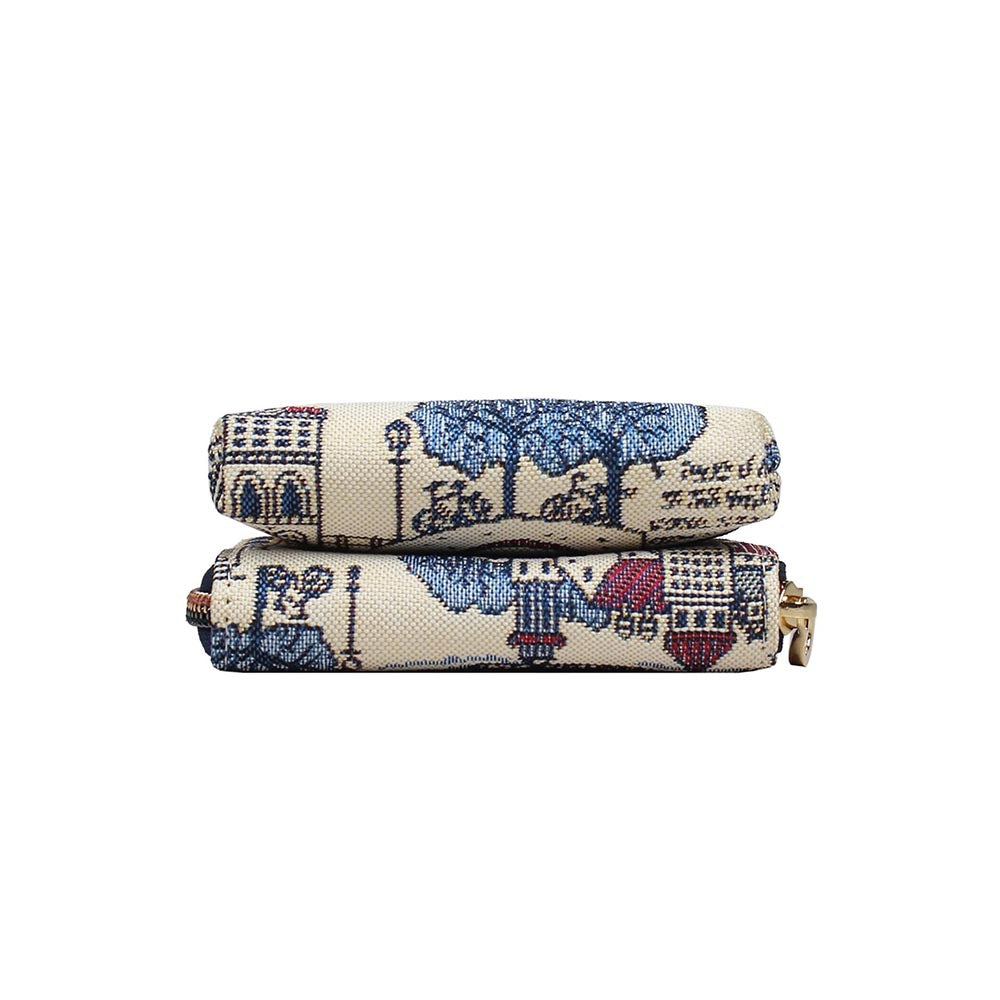 Description : This henney bear range of purses draw inspiration from the vintage kiss-lock frame designs of the early 20th century, when elegance was defined by delicate craftsmanship and lasting style. The kiss-lock clasp brings back the nostalgia of antique purses carried by women in old-world cafes and grand evening soirees now reimagined for the modern woman who values both tradition and function. Perfect for: those who love carrying a piece of classy and complimentary accessories with them. Additional information :type : purse size : height11cm width4.5cm depth8.5cm outer material : tapestry inner material : polyester leather parts : faux leather exterior features : one metal frame compartment with kiss lock closure main compartment with zipper closure interior features: signature lining 9 card slots 2 multi-purpose pockets