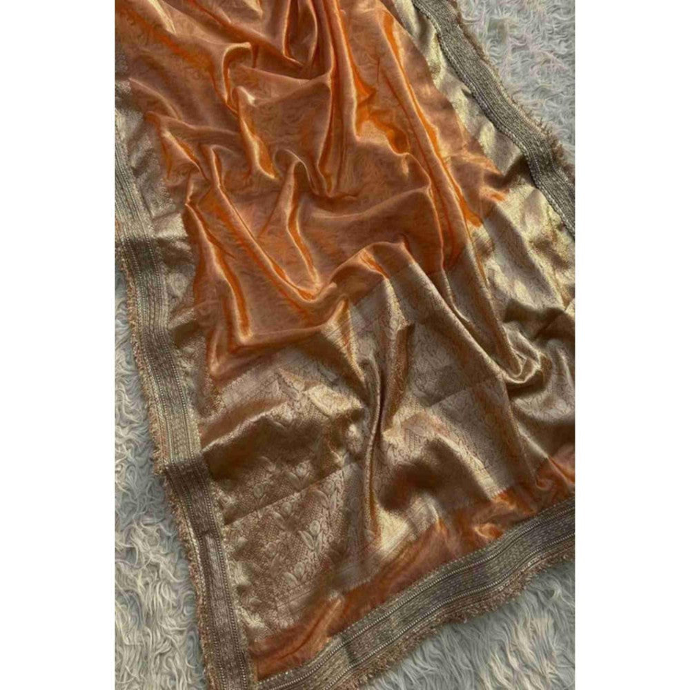 Description : Embrace timeless tradition with our exquisite orange saree paired with an unstitched blouse piece, giving you the freedom to customize your perfect fit and style. Crafted from luxurious fabric of tissue that flows effortlessly, this saree showcases intricate detailing and vibrant hues designed to turn heads at any celebration or festive occasion. The unstitched blouse lets you tailor the look exactly how you envision be it classic, contemporary, or somewhere in between. Whether draped for weddings, parties, or cultural events, this set promises grace, comfort, and endless styling possibilities.
