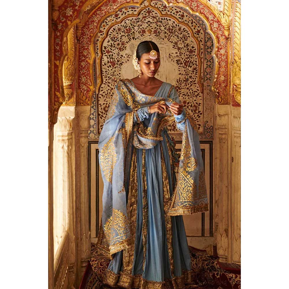 Description : Powder blue angrakha, Gota patti Dupatta with Powder Blue churidaar