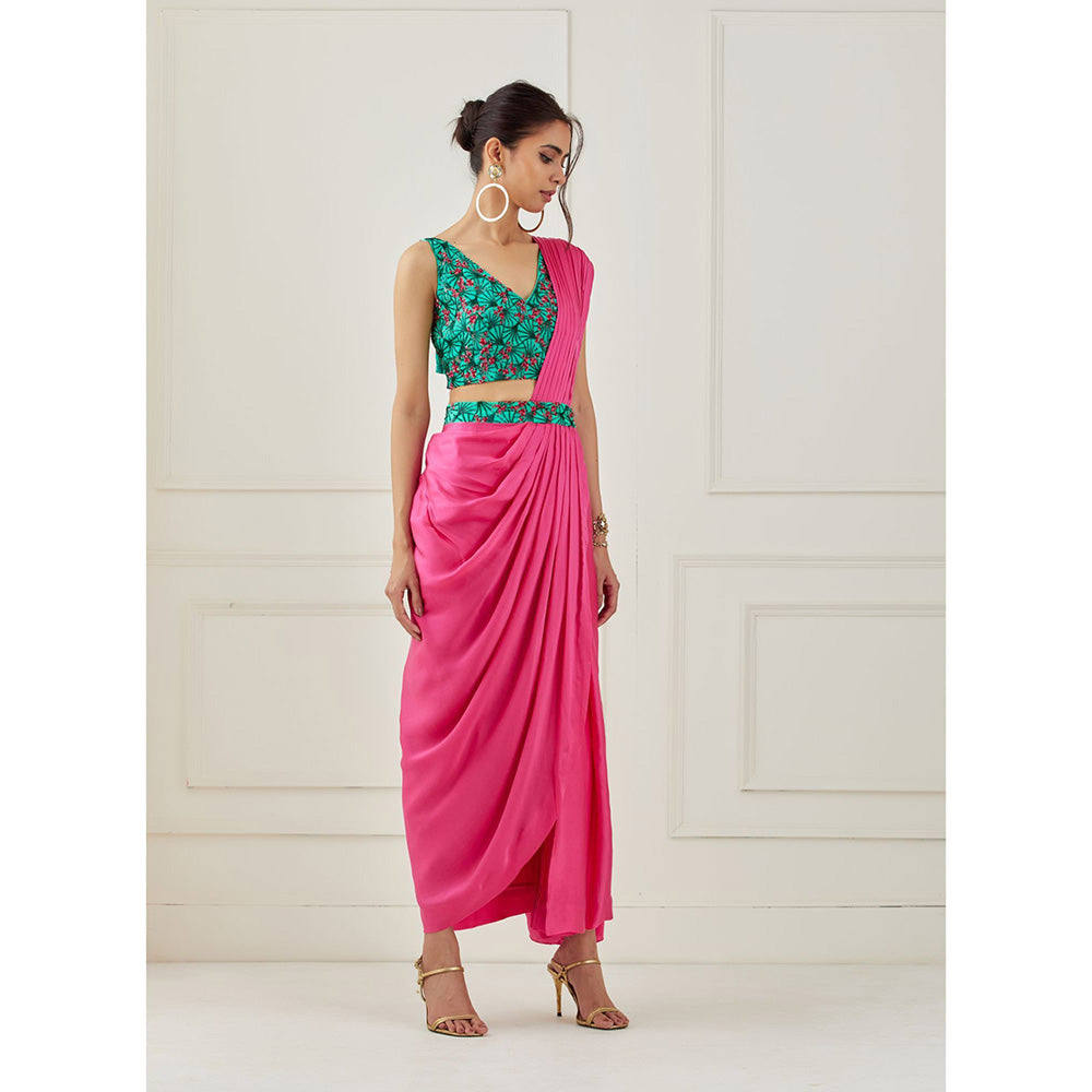 Pink Draped Saree with Sleeveless Stitched Blouse