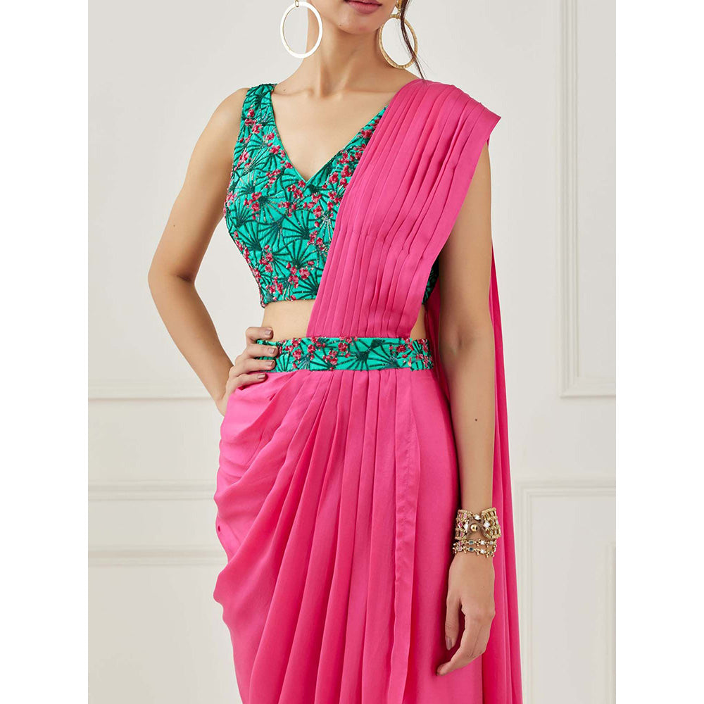 Label Nitika Pink Draped Saree with Sleeveless Stitched Blouse