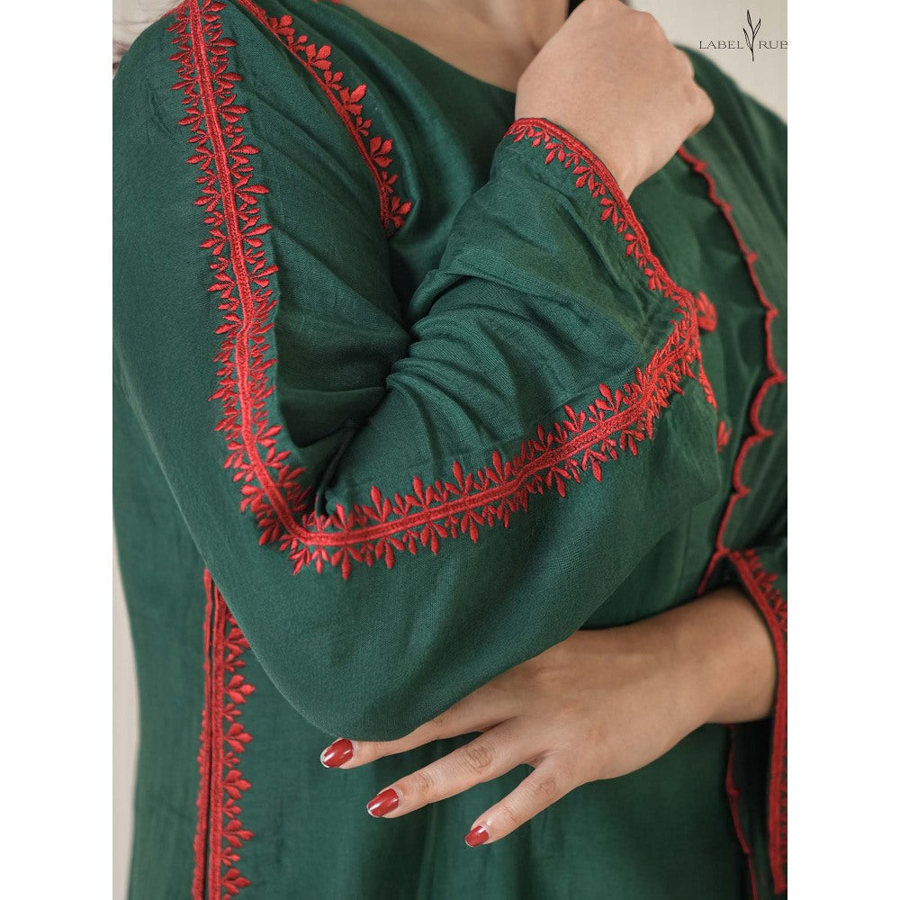 Label Ruby Bottle Green Mul Chanderi Kurta with Palazzo and Dupatta