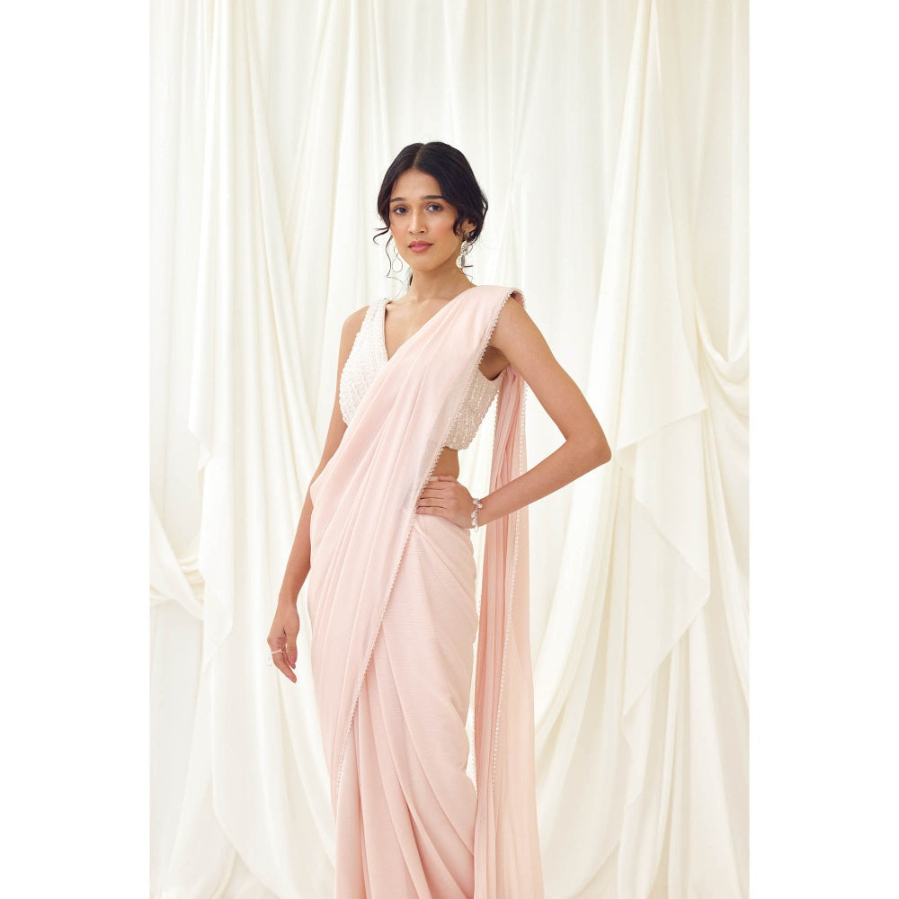 Lavanya Ahuja Pink Blush Pre-Draped Saree with Stitched Blouse