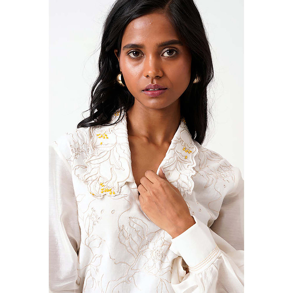 MADDER MUCH Cotton Beige Collar Neck Solid/Plain Top With Skirt