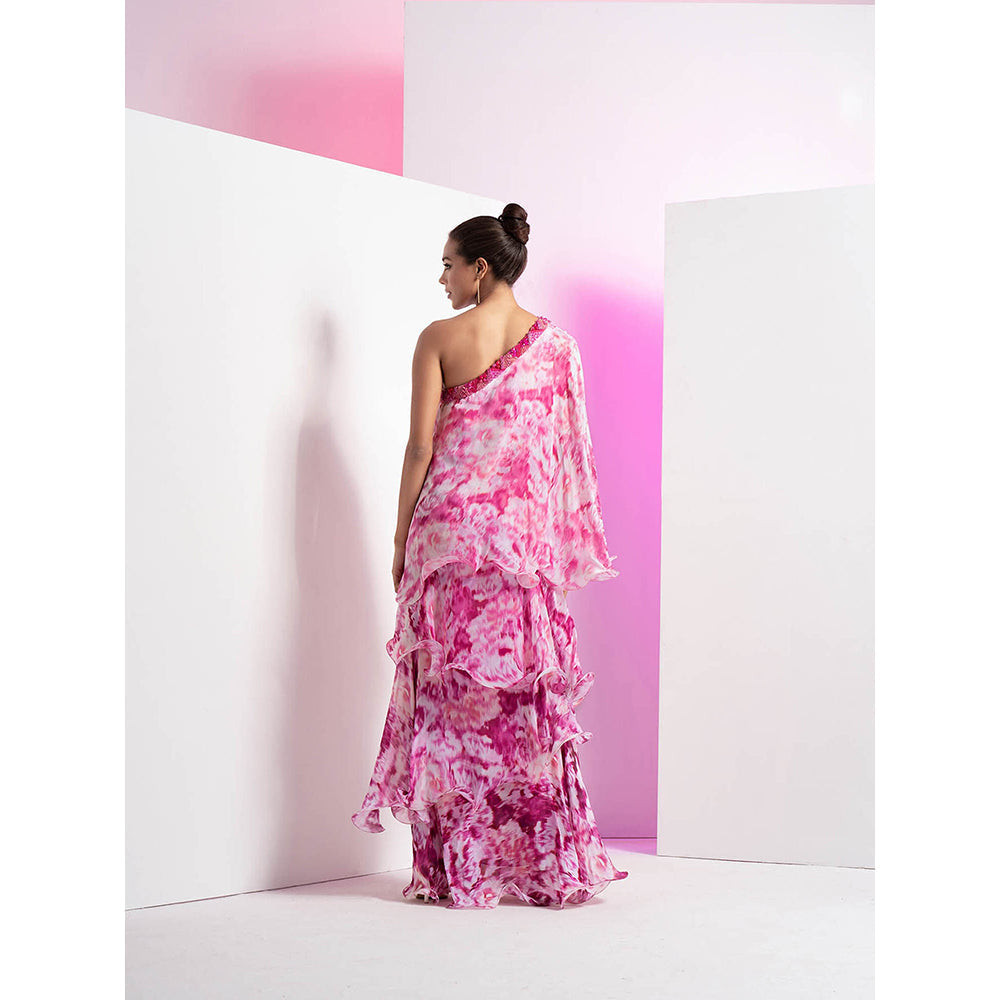 MANDIRA WIRK Faded Pink Tie & Dye Off-Shoulder Four Layered Maxi Dress