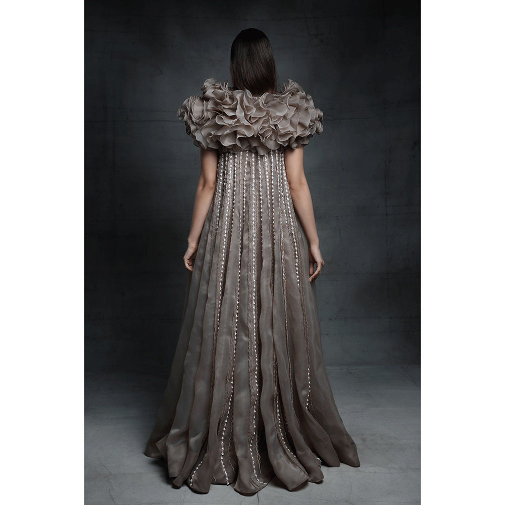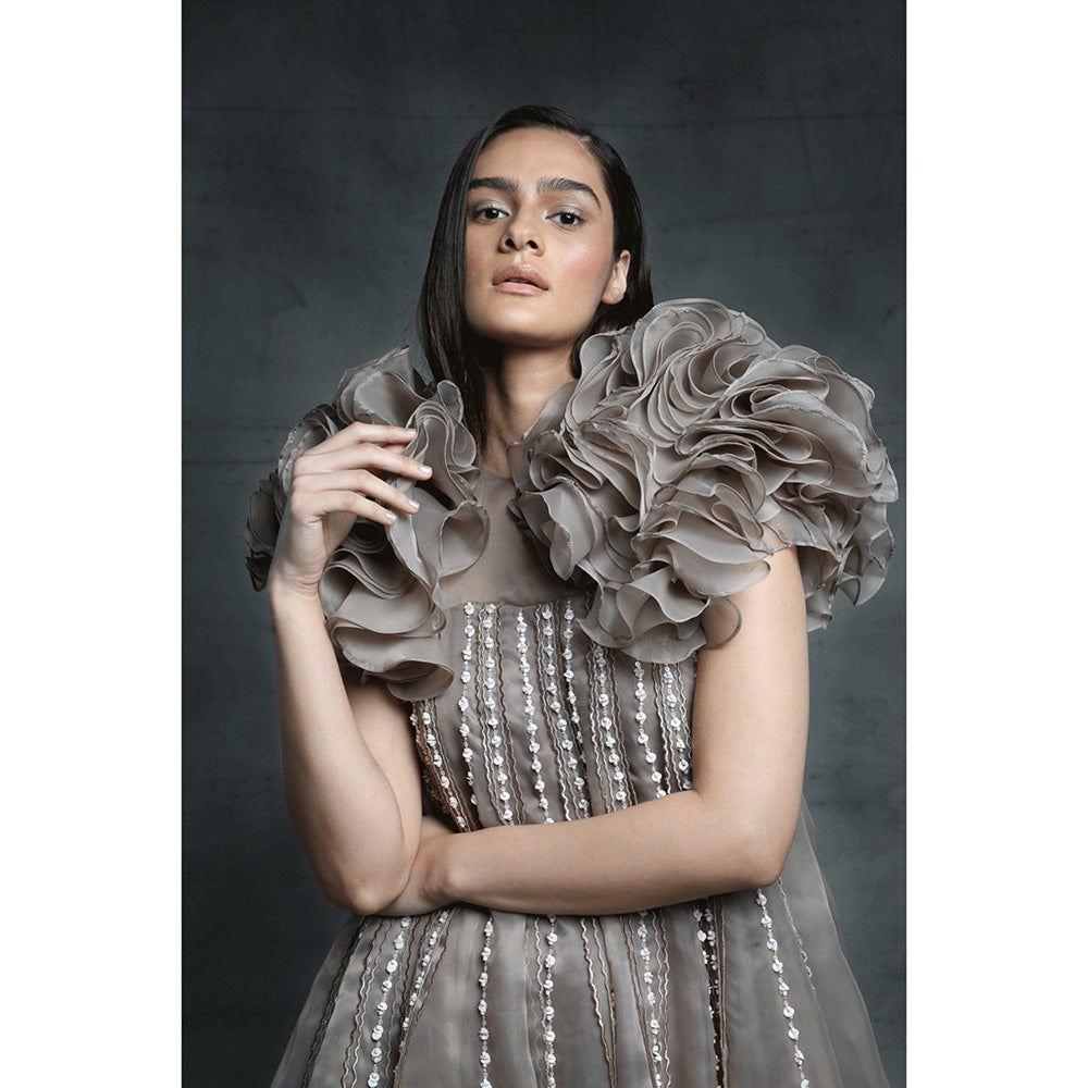 Description : Featuring a chickoo colored gown in organza base with embroidery. It is paired with a matching ruffled jacket. Tailored to sartorial perfection from premium quality fabric, it assures a soft and soothing touch against the skin. The exquisite silhouette adds to its appeal.