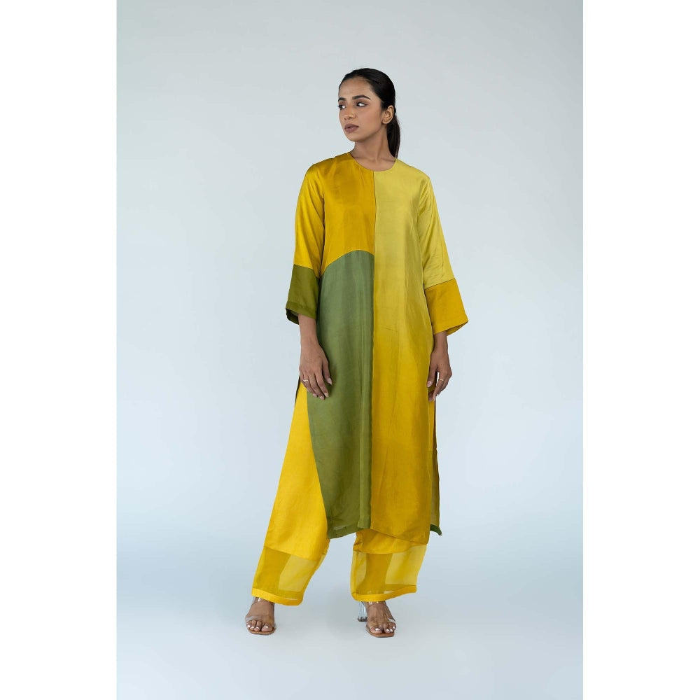 Meghna Panchmatia Mustard Ombre Kurta with Pants and Dupatta (Set of 3)
