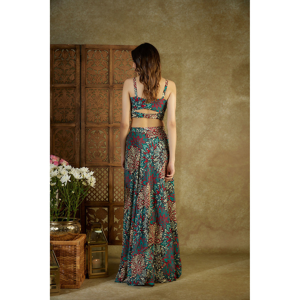 Green Printed Choli Draped Lehenga and Dupatta (Set of 3)