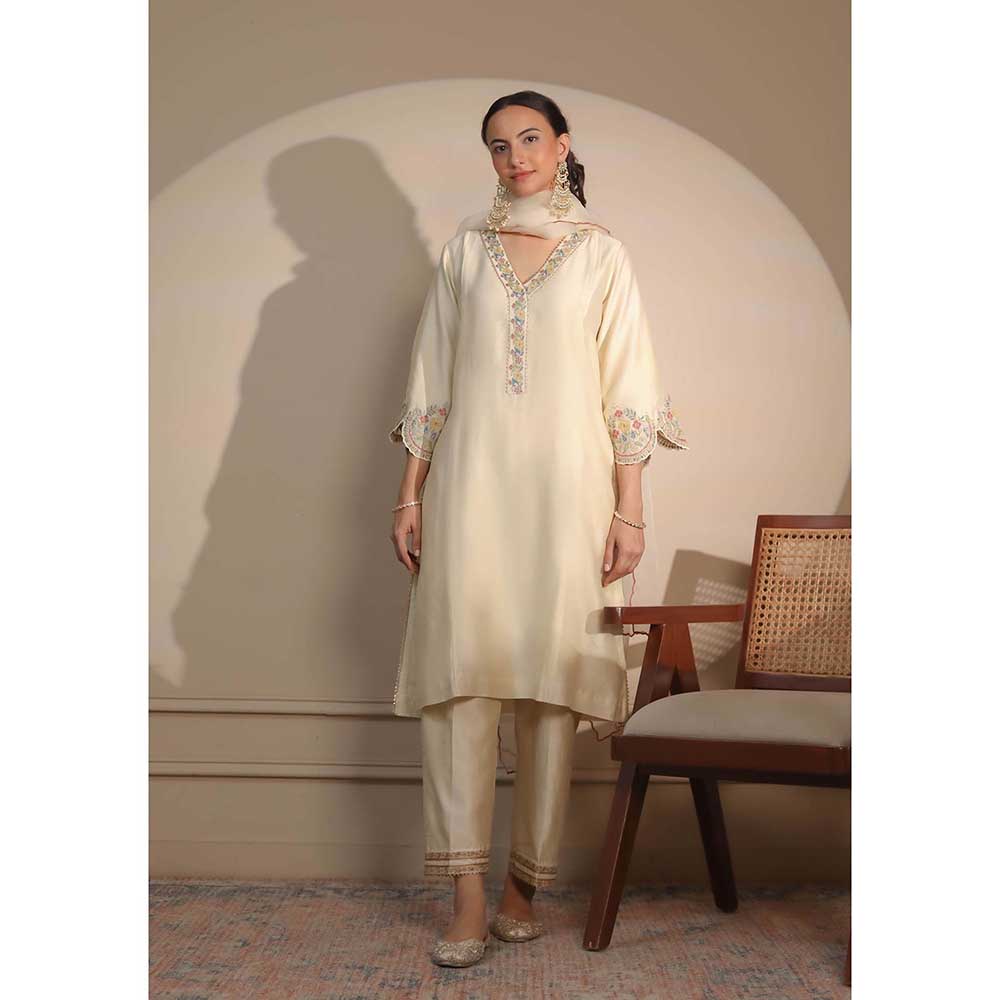 NEMAANI Ivory Sleeve Embroidery Kurta with Pant and Dupatta (Set of 3)