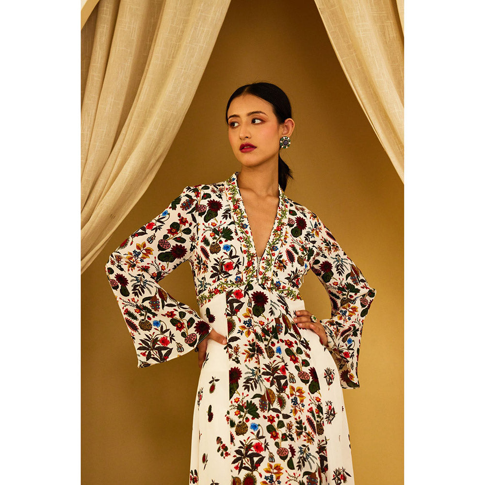 Nikasha Ivory Kohinoor Jaal Print Kalidar (Set of 2)