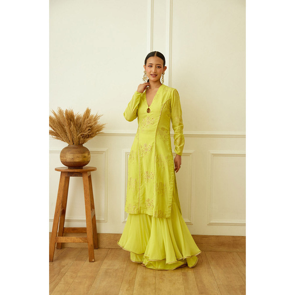 Nikasha Lime Green Foil Embroidered Sharara (Set of 3)