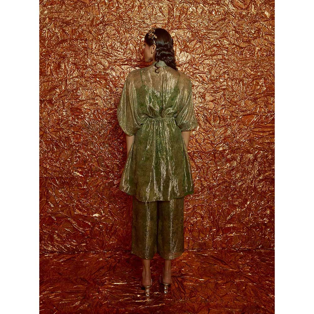Nirmooha Green Lurex Printed Kaftan with Pants and Slip (Set of 3)