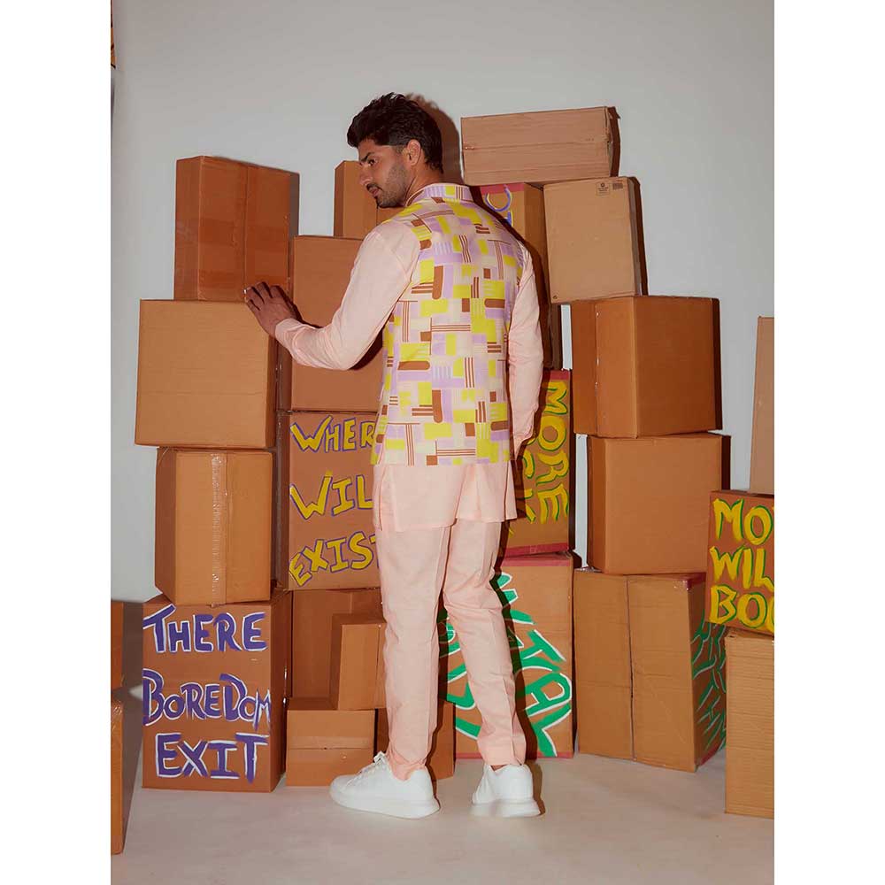 Kurta with Straight Pant and Multicolor Nehru Jacket (Set of 3)