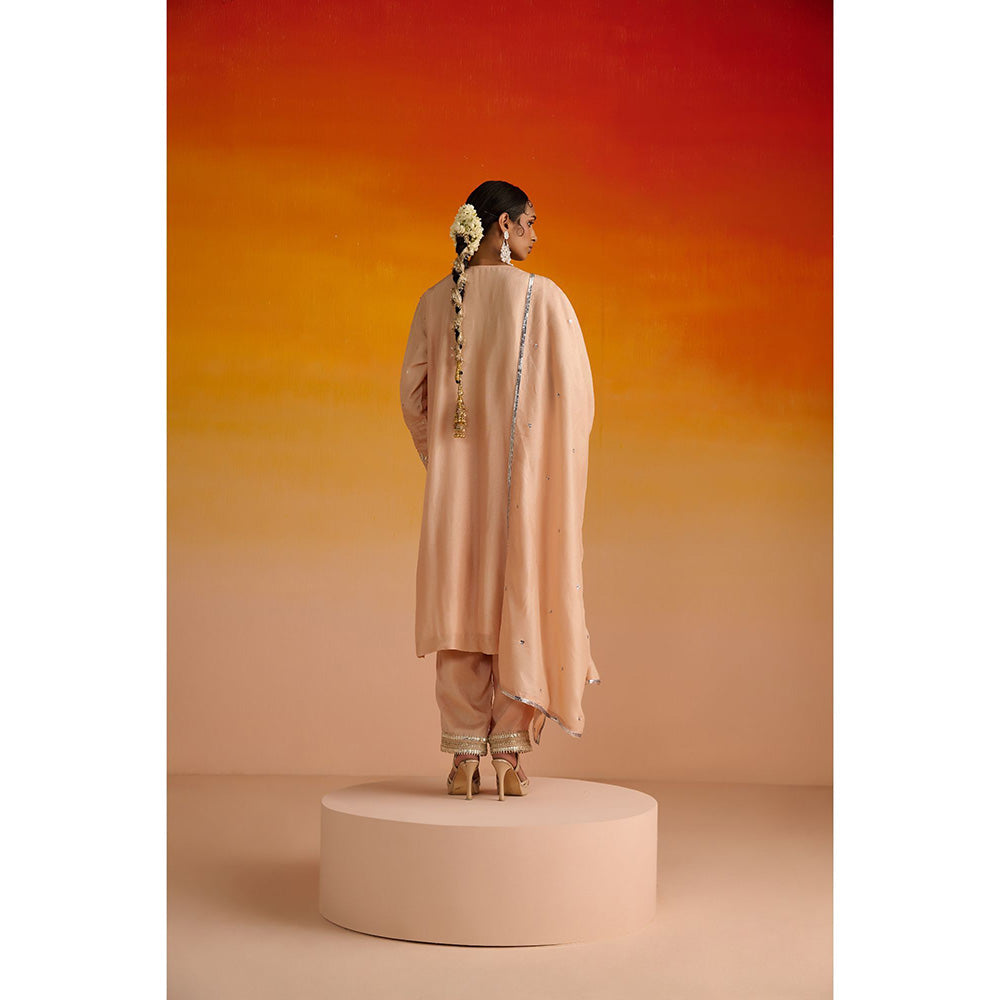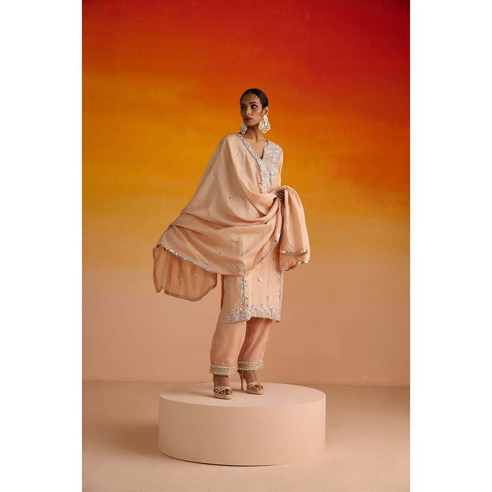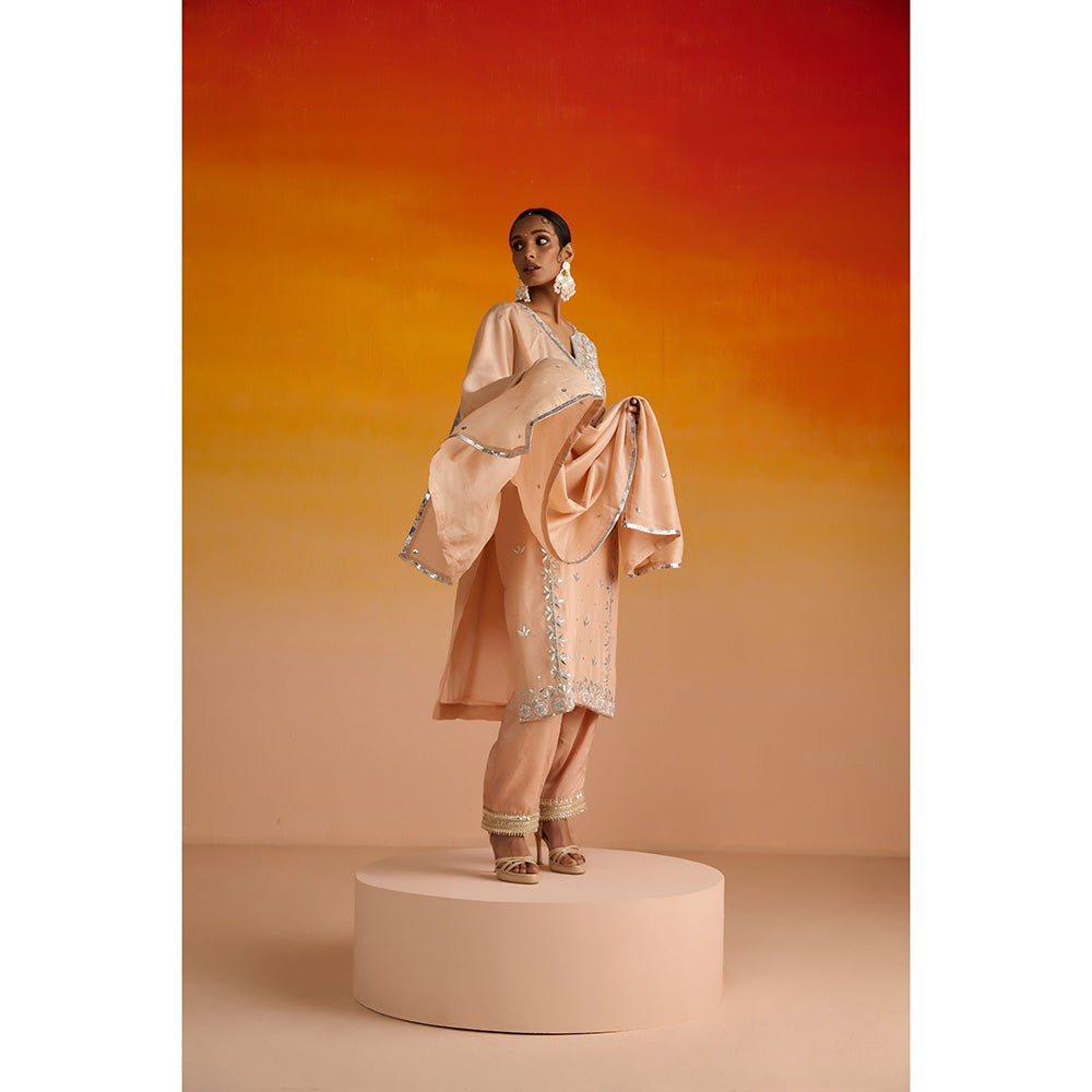OHH CROW Peach Embroidered Opara Silk Kurta with Pant and Dupatta (Set of 3)