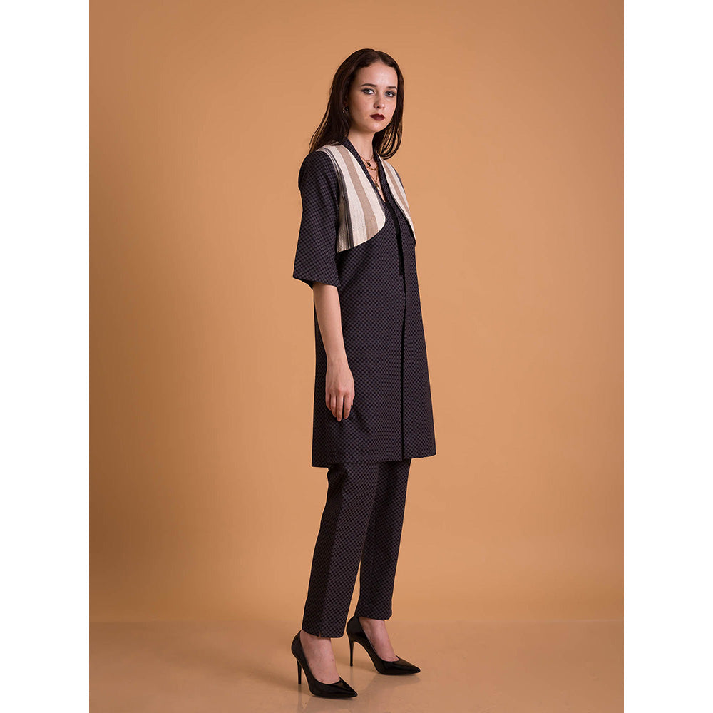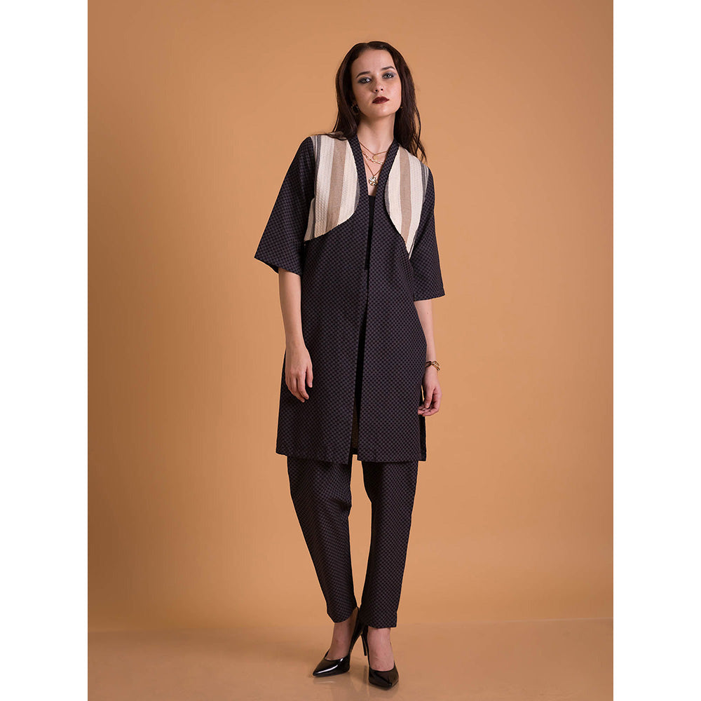 Jacqua Checks Half Sleeves Black Jacket with Pant (Set of 2)