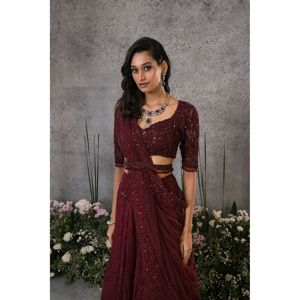 Rosewood Lehenga with Blouse - Dupatta & Tassel Belt (Set of 3)