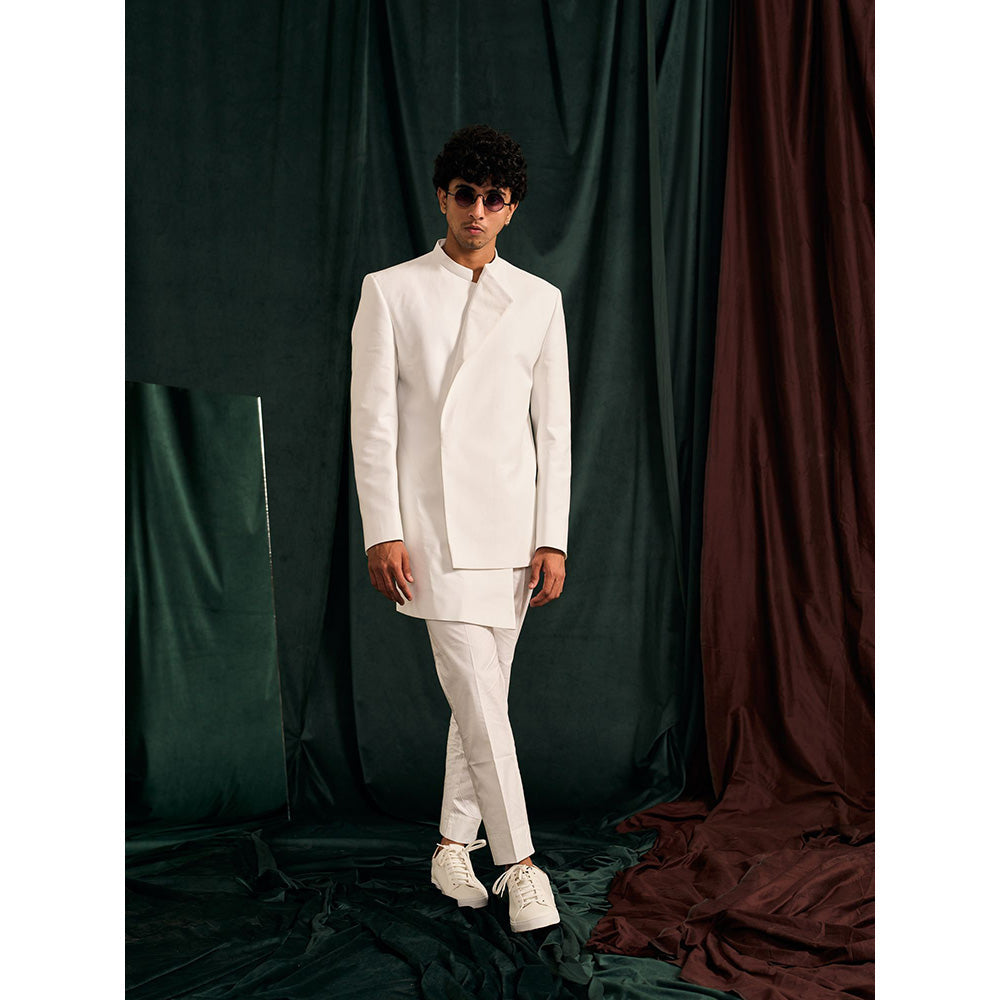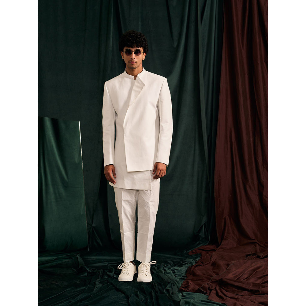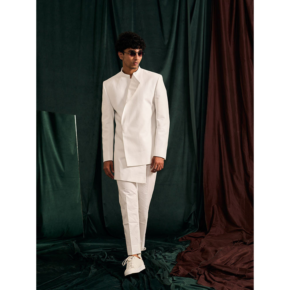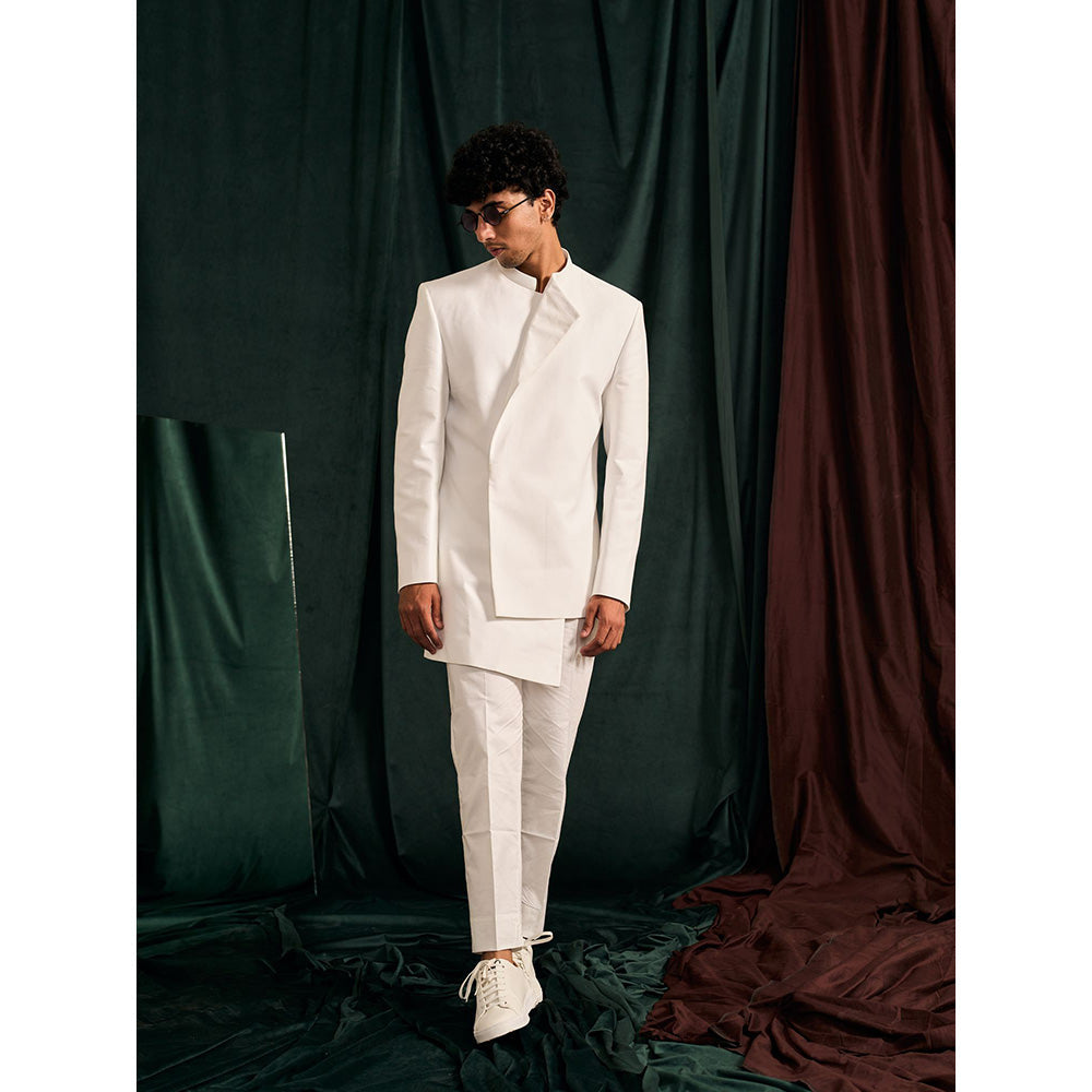 Ice Asymmetric Giza Cotton Bandhgala Set (Set Of 2)