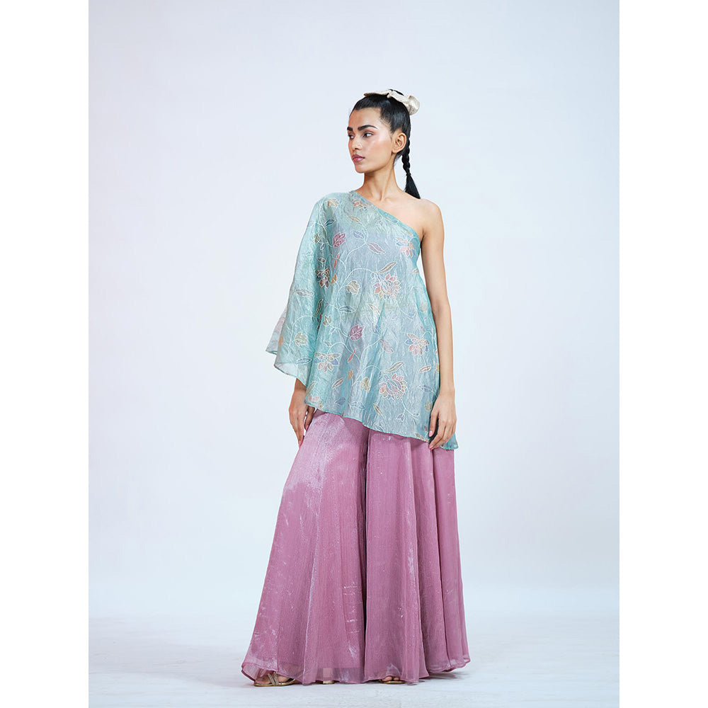 RAAG SUTRA Pastel Crushed Tissue Blouse with Top and Palazzo (Set of 3)
