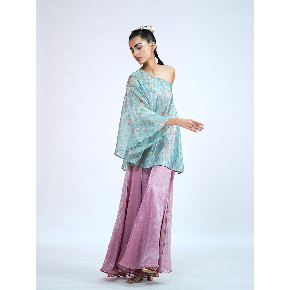 Pastel Crushed Tissue Blouse with Top and Palazzo (Set of 3)