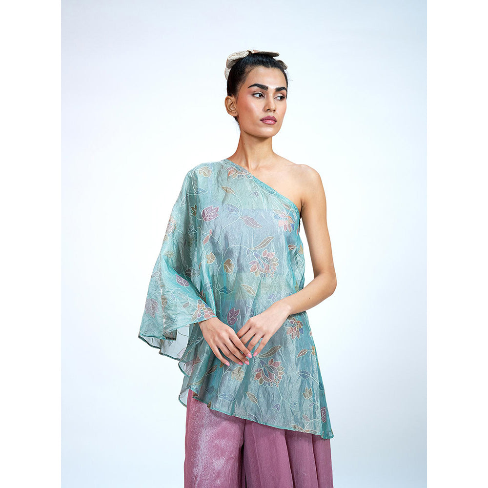 Description : Enhance your festive wardrobe with the trendy RAAG SUTRA Pastel Crushed Tissue Blouse with Top and Palazzo. Crafted from premium quality fabric, this kurta features flared sleeves and a stylish one shoulder design. Complete your festive look by accessorizing with beautiful jewelry and carrying an embellished sling bag.