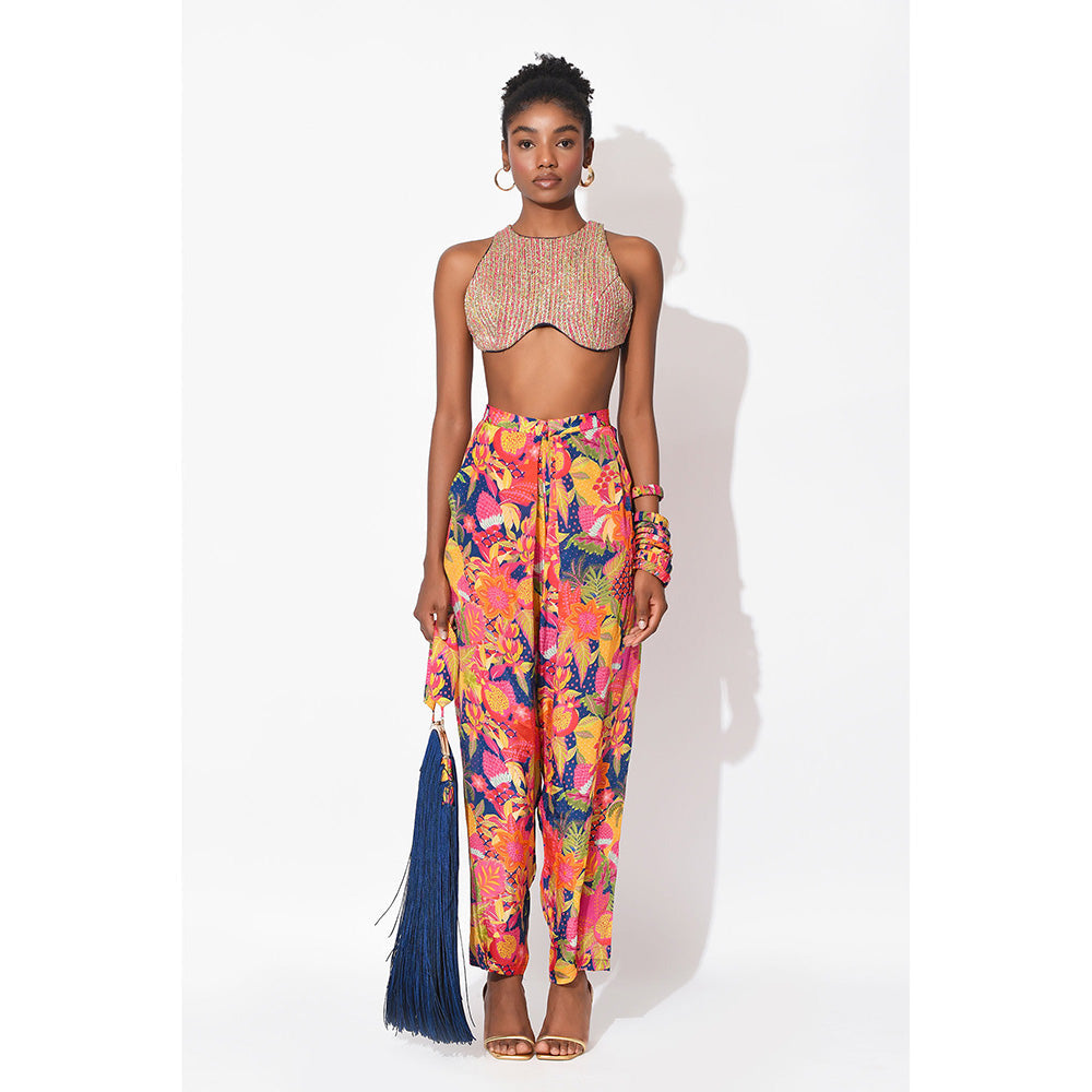Rishi & Vibhuti Multi-Colour Electric Blitz Top With Pant (Set of 2)
