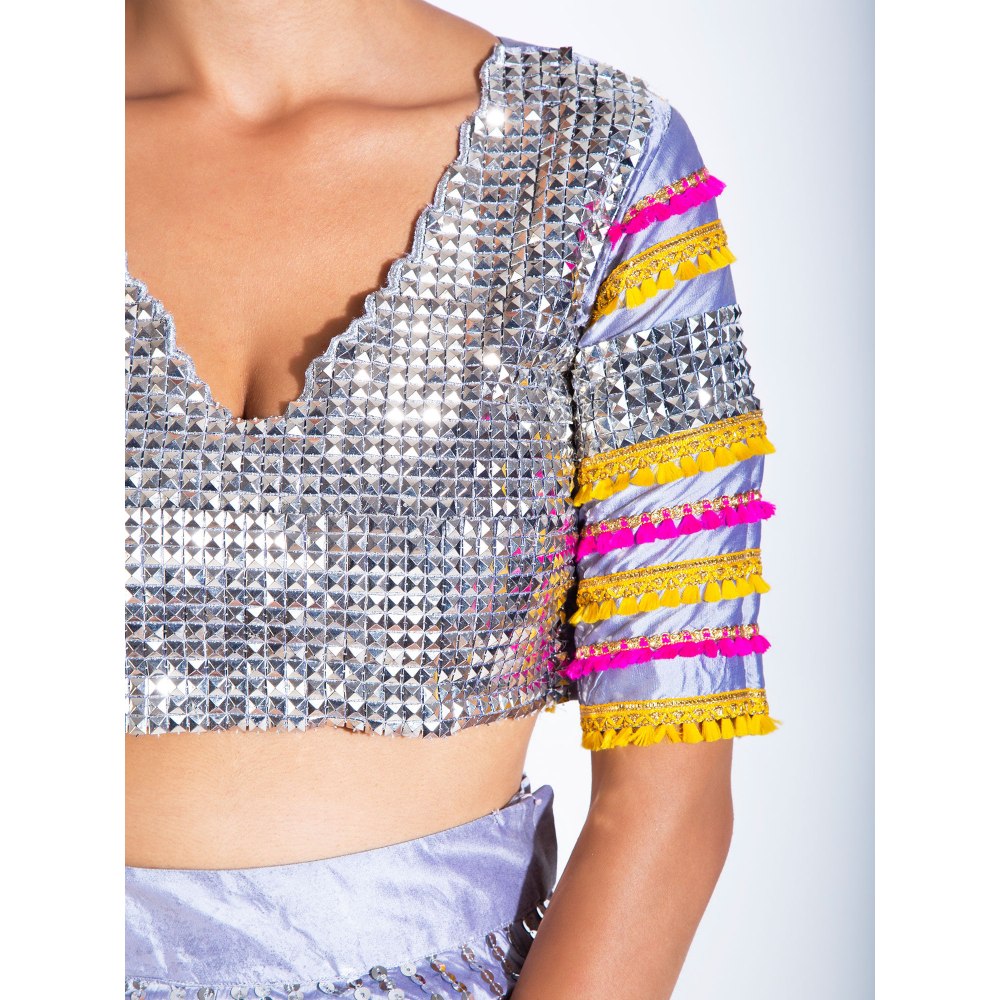 Rishi & Vibhuti Sliver Stitched Blouse Lehenga With Dupatta (Set of 3)