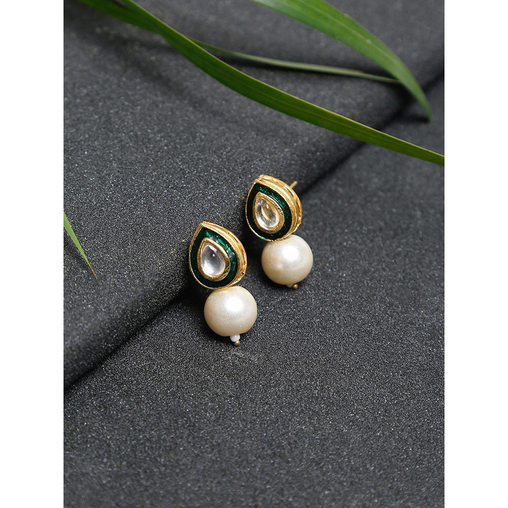Description : Kundan with Meenakari and Pearl studs, Ruby Raang pieces are carefully handcrafted in Delhi, each piece is glorious and articulate, add a touch of glam to any outfit and look your very best with our versatile pieces fit for all ages and all occasions. All our pieces are handmade using hypoallergenic material.