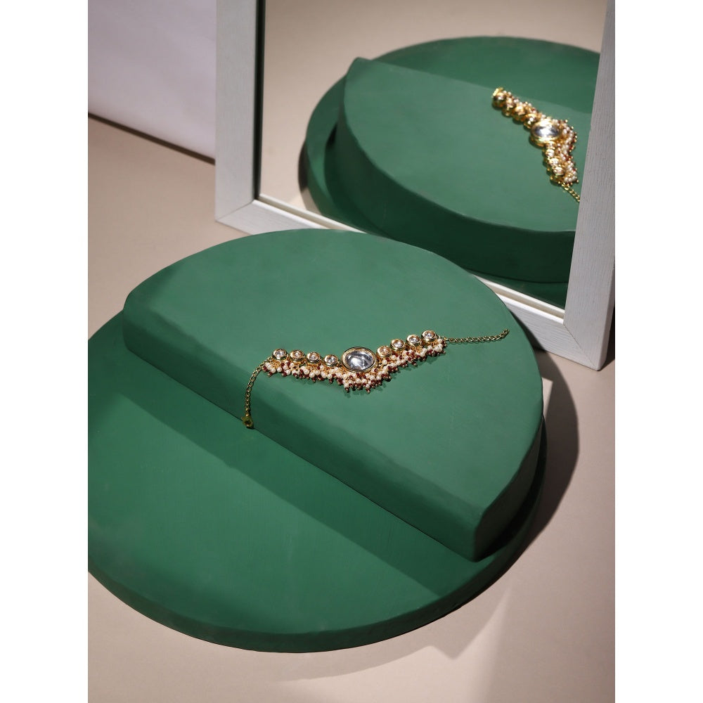 Ruby Raang Studio Round Kundan Bracelet With Maroon Stone Detailing