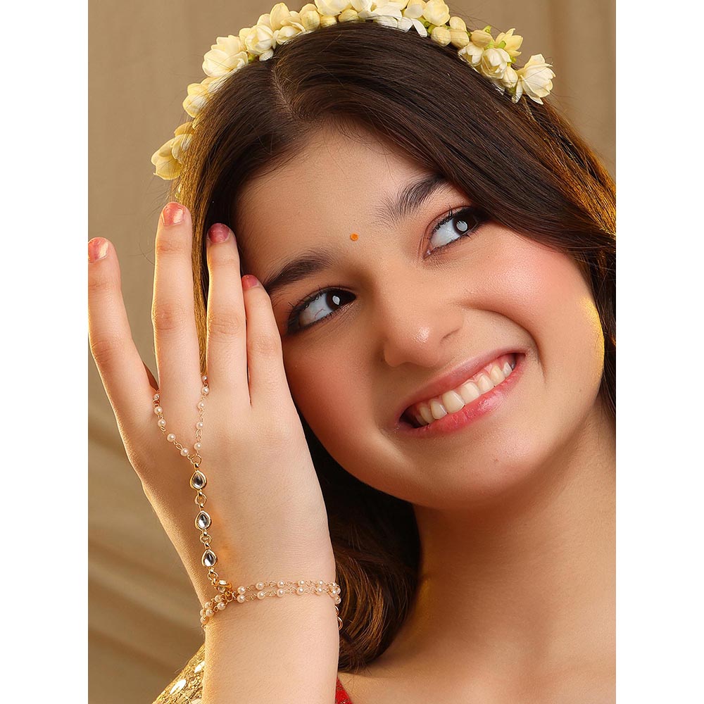 Subtle Gold-Pearl Kundan Hand Harness