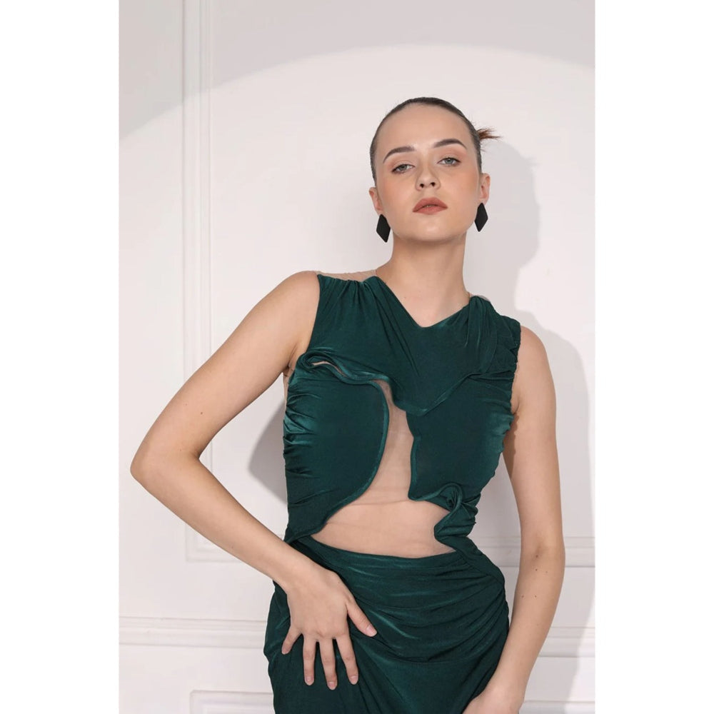 Ruhm Black Maxi Dress with Ruching and Cutouts