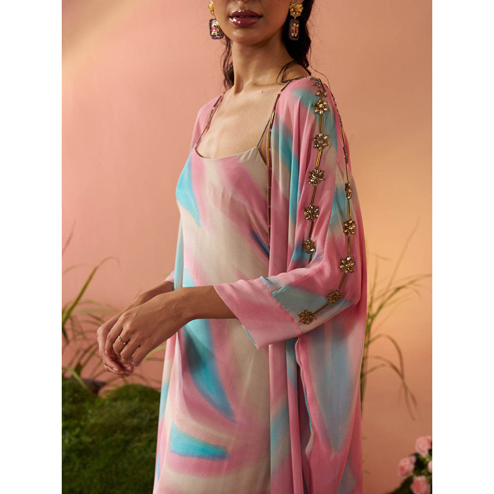 Multi-Colour Dye-Print Cape with Dress (Set of 2)