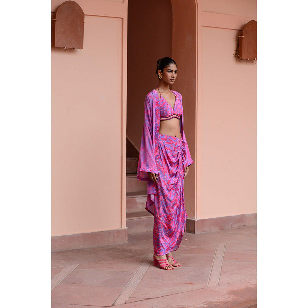 RV Pret Rose Ruched Pink Top Overlay and Skirt (Set of 3)